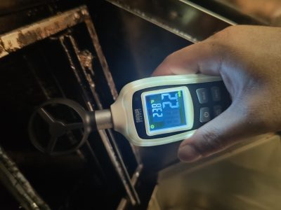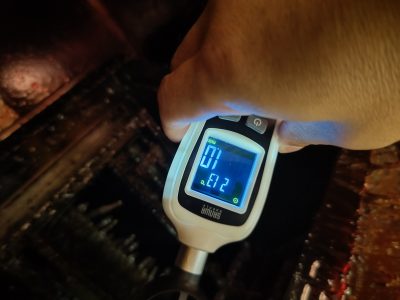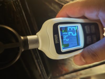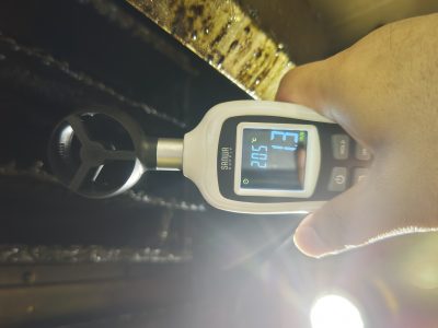 今回の清掃は換気扇の吸い込みが弱くなってきたので清掃してほしいとのご依頼でしたので、清掃前後で風速の測定も行いました。