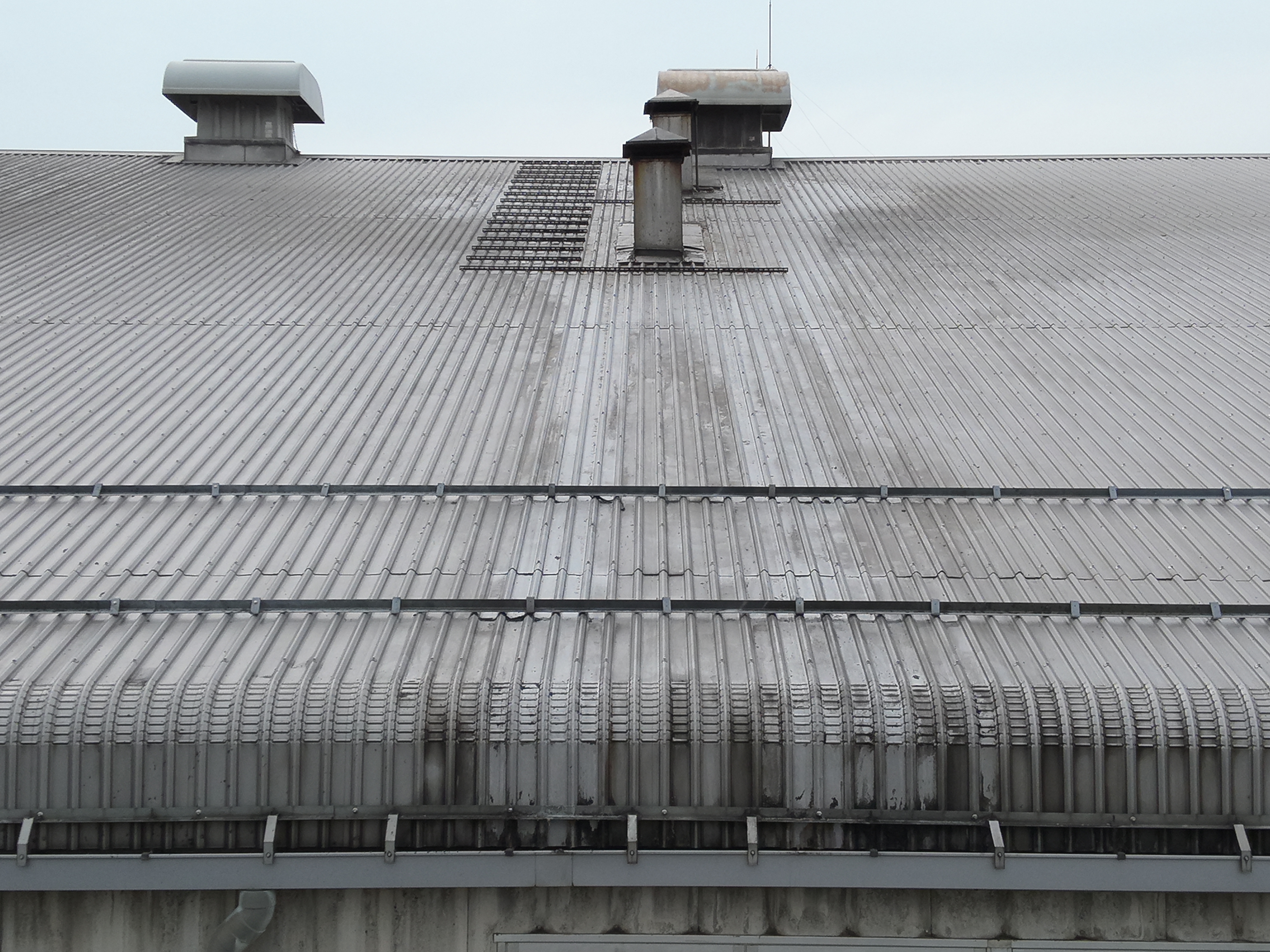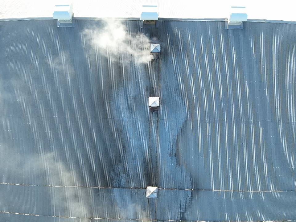 工場の屋根清掃。高圧ジェットで屋根の汚れを落としました。
